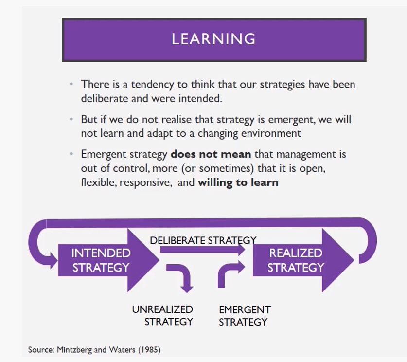 What’s an emergent strategy? Mintzberg and Water (1985) came up with the term to help identify the gap between the intention and the realisation when it comes to strategies. I found this video useful as background reading.